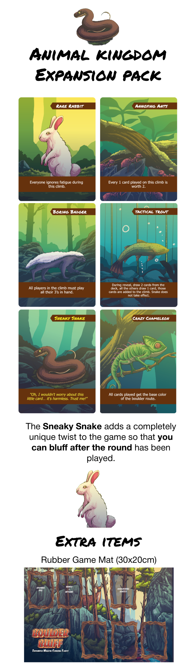 The Enchanted Magical Climbing forest welcomes 6 new critters! Get ready for a more aggressive and adventurous gameplay with extra bluff elements. Recommended for advanced players.