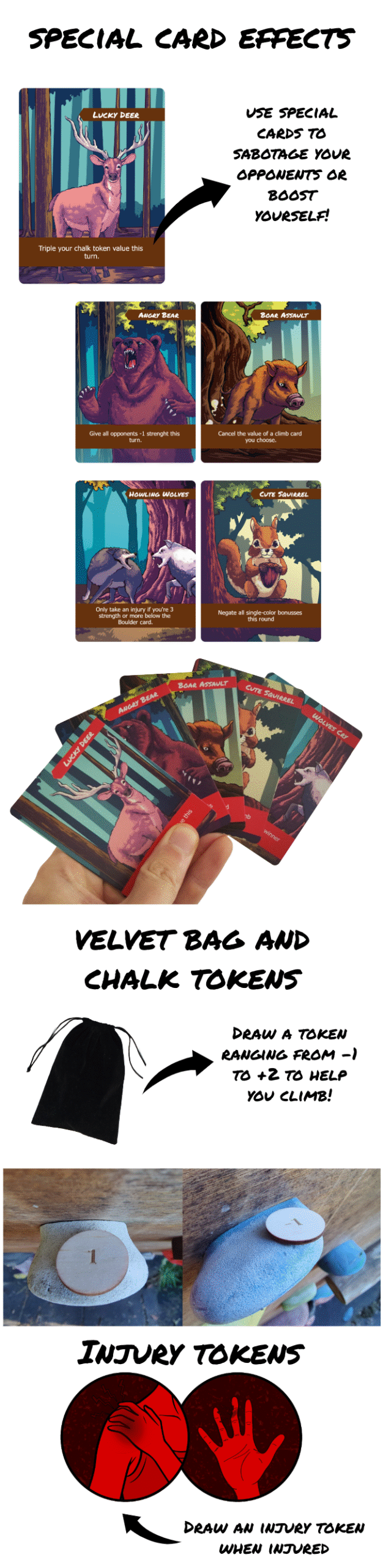 Light, portable, and full of bold, eye-catching artwork. Climb routes, stack points, and see who can send the most!