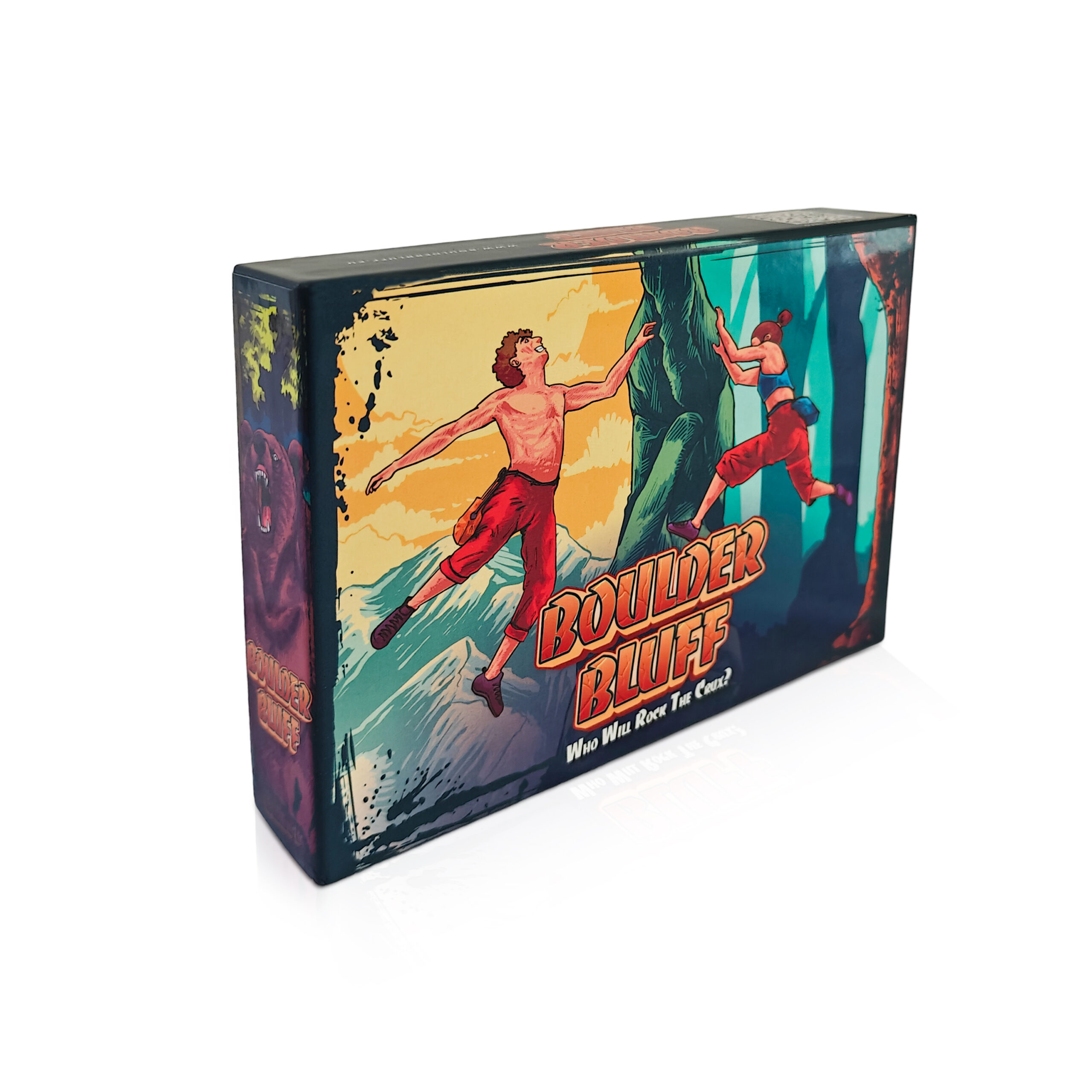 This light and fun highly thematic game is made to play ‘on-the-go’ when climbing outdoors, as a warm-up or cool down at your Board Game Night, or simply as a quick 45 minute easy going bluffing game with your friends and family! With simple but unique mechanics, Boulder Bluff is a must-have in every boardgamer’s collection.